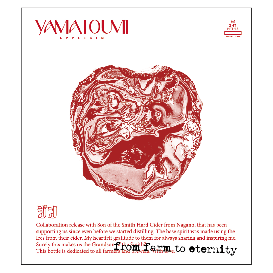 長野県大町市にある『Son of the Smith hard cider』(以下サノバスミス)のハードサイダーの澱に、リンゴの香りを活かすために極少量のジュニパベリーだけを加えて蒸留しました。