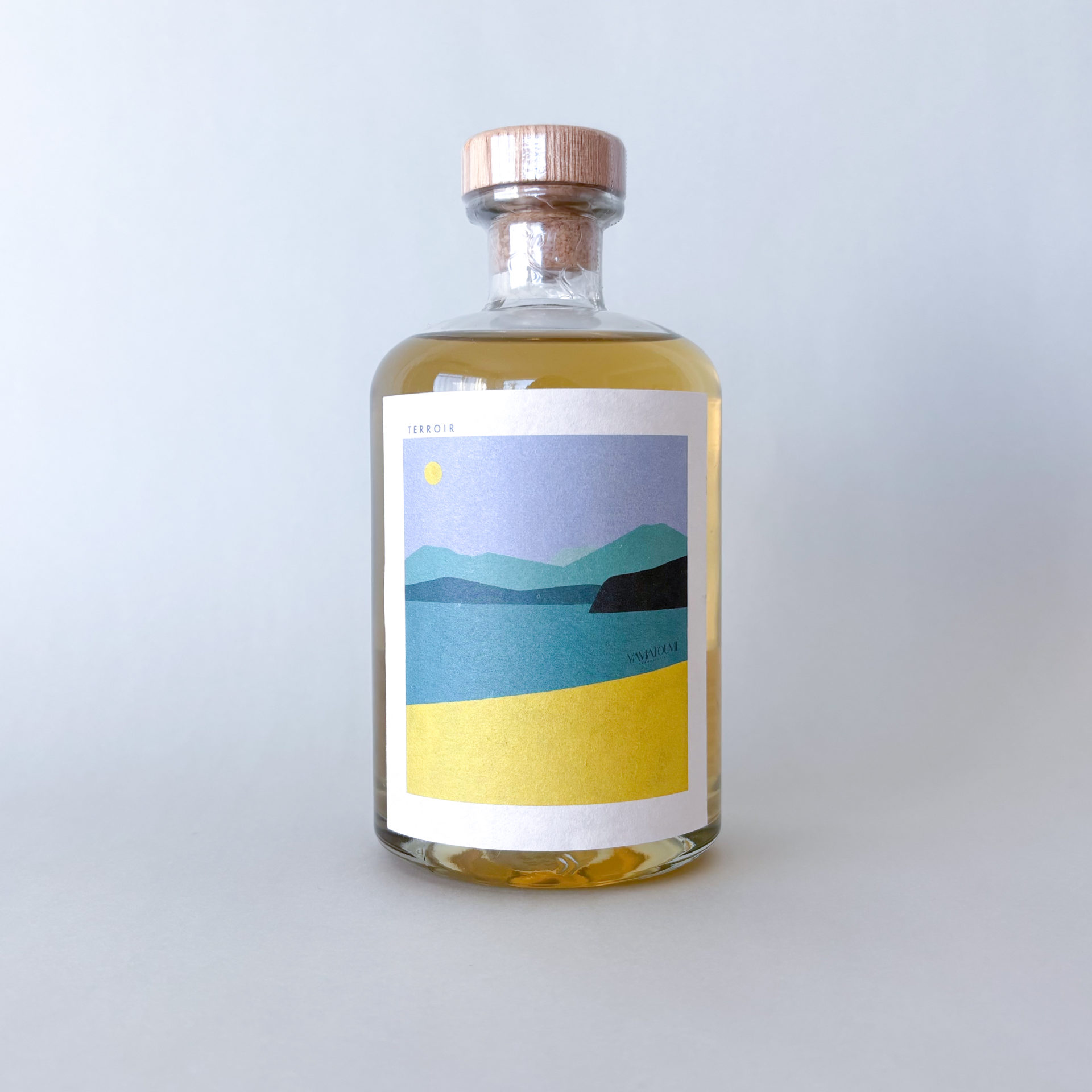 友人でもあり、近所で有機農業を営んでいるキマモリ農園の寺田君に酒米、山恵錦を育ててもらい、その近所の高橋助作酒造店にその米を生酛造りで醸してもらってできた有機純米酒をYAMATOUMIで蒸留し、これまた近所の森や山に自生している植物を採取して浸漬し、ボトリングしました。